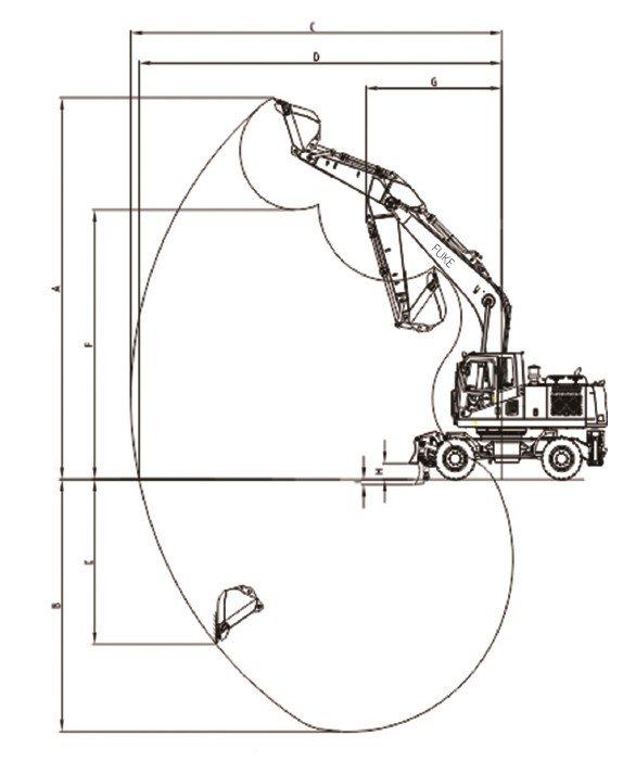 | Maks. wysokość kopania | 9725mm A |